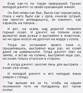 Продолжение застольных кавказских тостов, с 16-го по 20-й.